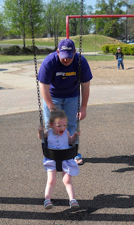One nice, Spring Saturday, we headed out to a local park. Avery loves the park but, of course, HATES to leave! It seems like if I take her alone, she is not afraid to have a full meltdown during the leaving process, but if daddy is there, she tends to suck it up and only lets a few tears fall during the walk to the car. It is amazing the different way she handles things, depending on who is there! We are loving this Spring weather and trying to soak it all in before its too hot to breathe outside. Believe me, it will be here before ya know it!